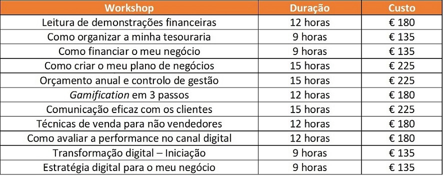 Dada a evolução constante do mercado de trabalho, que implica que os profissionais adaptem os seus processos de trabalho à nova realidade, desenvolvemos um conjunto de workshops de curta duração que visam melhorar as competências e conhecimentos dos participantes.